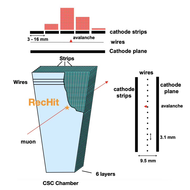 CSCs consist of arrays of positively-charged anode wires crossed with negatively-charged copper cathode strips within a gas volume.